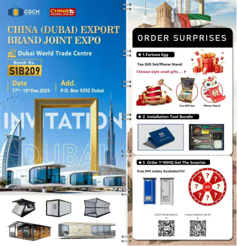 CGCH Group, a global leader in modular homes, container house construction, and advanced portable space solutions,will participate in the 2025 China (Dubai) Export Brand Expo, taking place from December 17–19, 2025 at the Dubai World Trade Centre.